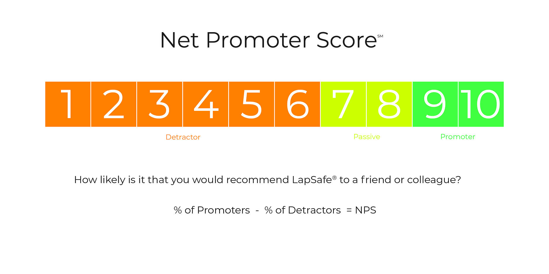 The Net Promotor Score ® was created in 2003 by Fred Reichheld, to measure an organisations performance. We trust and use this method, as it allows us to understand our customers better and what they love about LapSafe ®. Positive and negative feedback is essential for any business, it is a measure of performance and offers the chance for improvement.